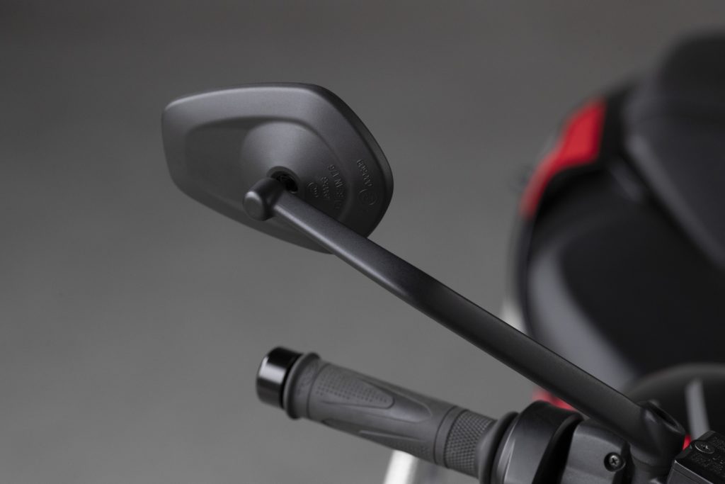 Anche il design delle sovrastrutture è nuovo – mostra un andamento più spigoloso e sportivo, con linee e tagli più netti. La forma del nuovo fly screen e dei convogliatori d’aria è più pronunciata, riprendendo quella del nuovo gruppo ottico, cosi come rivisti sono i fianchetti laterali e il codino. L’ulteriore attenzione posta alla qualità di ogni singolo componente è evidente anche osservando i nuovi retrovisori dalla funzionalità ottimizzata.