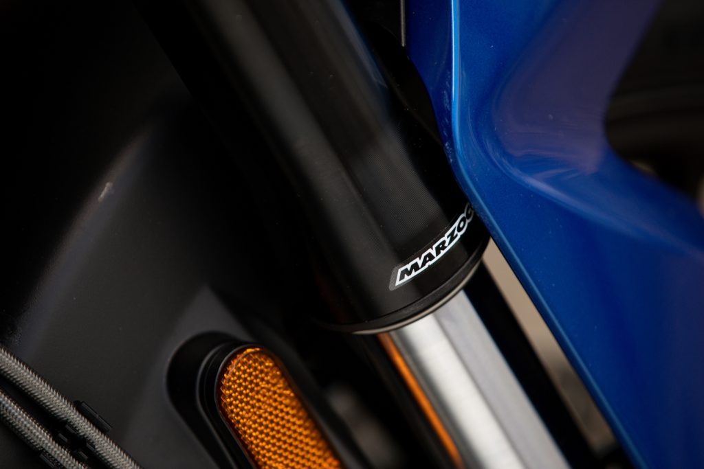 - Sospensioni Marzocchi con forcella a steli rovesciati e monoammortizzatore posteriore regolabile nel precarico.