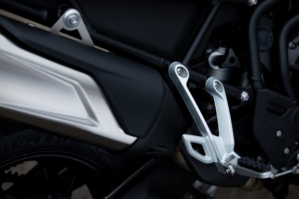 Per rendere ogni viaggio ancora più piacevole, il serbatoio della Tiger 850 Sport accoglie 20 litri mentre il parabrezza facilmente regolabile in altezza con una sola mano si occupa di isolare il pilota dalle intemperie.