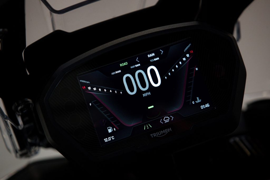La Triumph Tiger 850 Sport è equipaggiata con un brillante display 5” TFT, che assicura perfetta leggibilità in ogni condizione di illuminazione. Ogni informazione viene presentata al pilota in modo chiaro ed immediato.