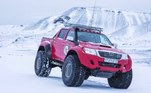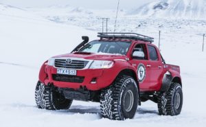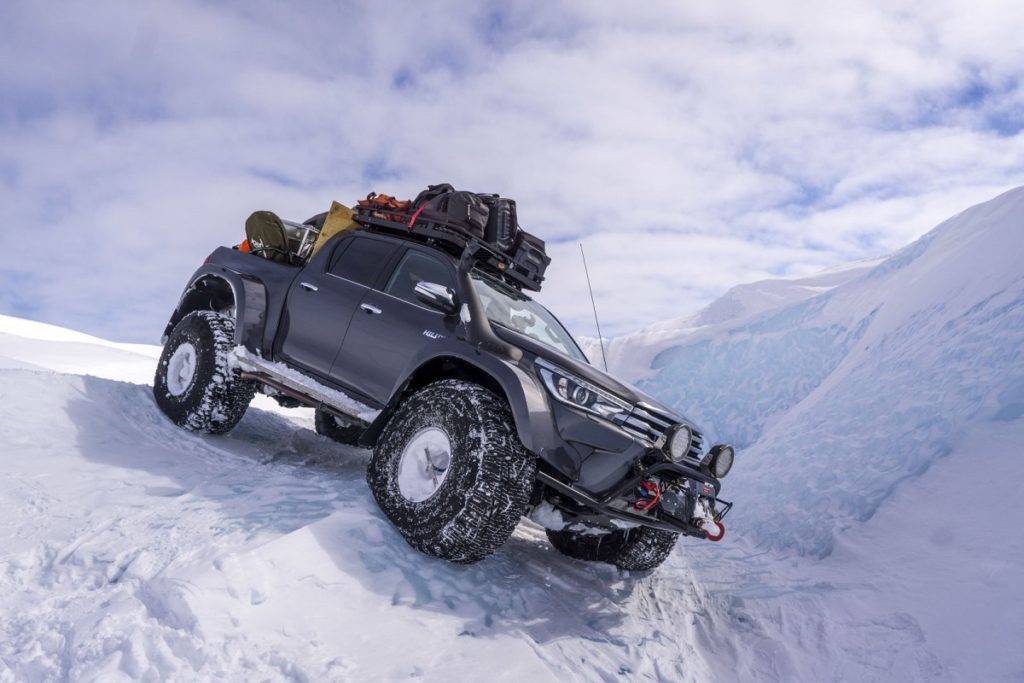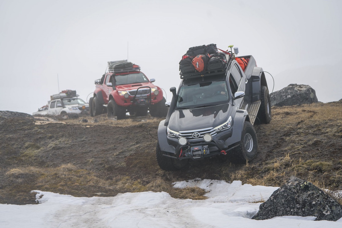 Il team ha scelto tre veicoli personalizzati dalla Islandese Arctic Trucks – lo stesso genere di veicoli utilizzati per le spedizioni in Antartide. Il più nuovo dei veicoli è stato equipaggiato con pneumatici ad alte prestazioni Nokian Hakkapeliitta 44 del produttore di pneumatici più a nord del mondo, Nokian Tyres. Il pneumatico ha una mescola del battistrada disegnata appositamente per offrire grip e durata in condizioni di freddo estremo.