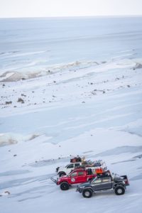 Le condizioni impegnative in Groenlandia hanno portato le forze dei protagonisti e dei veicoli all’estremo. Durante il processo di preparazione infatti, uno dei mezzi è caduto parzialmente in un fiume coperto di ghiaccio.