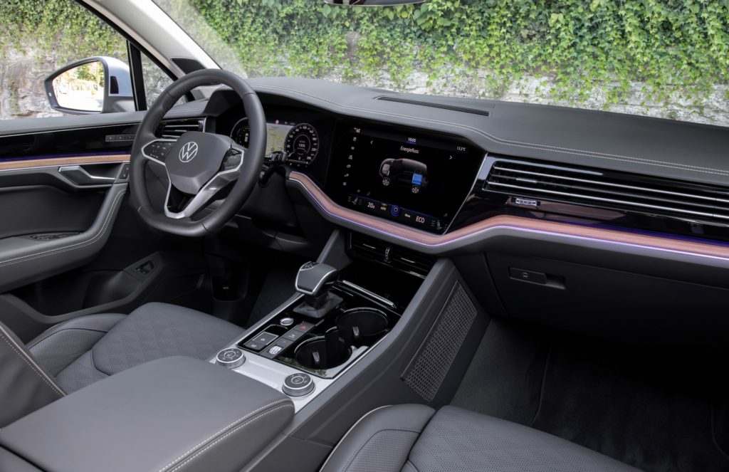 Tra gli equipaggiamenti di serie delle nuove Touareg eHYBRID Atmosphere ed Elegance spiccano in particolare: l’interfaccia totalmente digitale Innovision Cockpit (composta da strumentazione digitale Digital Cockpit da 12,3 pollici e navigatore satellitare Discover Premium da 15 pollici), il climatizzatore automatico Climatronic a 4 zone, il bagagliaio ad apertura elettrica e i sedili Top Comfort riscaldabili in pelle Vienna. Inoltre, come su tutta la gamma Touareg sono di serie i sistemi di assistenza alla guida cruise control adattivo ACC, il monitoraggio della stanchezza del guidatore Fatigue Detection, il sistema di controllo perimetrale Front Assist, quello di mantenimento della corsia Lane Assist e il riconoscimento della segnaletica stradale.
