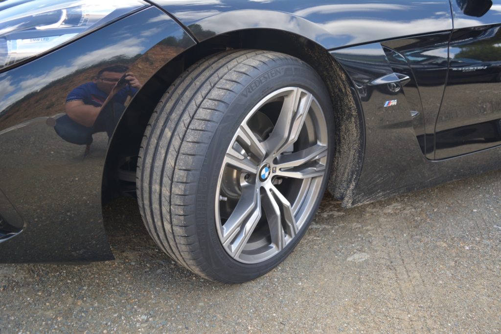 L’evento è stato molto interessante perchè abbiamo provato il pneumatico in strada e in pista, con diverse auto che montavano misure diverse di pneumatici. In strada erano disponibili delle BMW Serie 3 e delle Z4. Noi abbiamo scelto la seconda, in versione Sdrive 20i Sport da 197 cavalli, gommata all’anteriore in misura 225 45 R18 e al posteriore in misura 255 40 R18. Il percorso prevedeva circa 110 km di curve, davvero stupendo, composto da saliscendi continui, tutto sulle colline intorno a Siviglia. L’obiettivo principale era sentire come si comporta il pneumatico in una varietà di situazioni reali: salite, discese, strade di montagna un pò dissestate, frenate in discesa in curva, e chi ne ha piu ne metta.