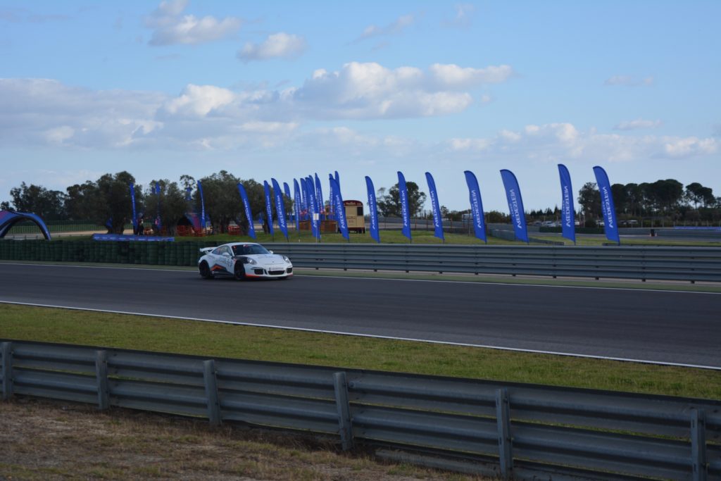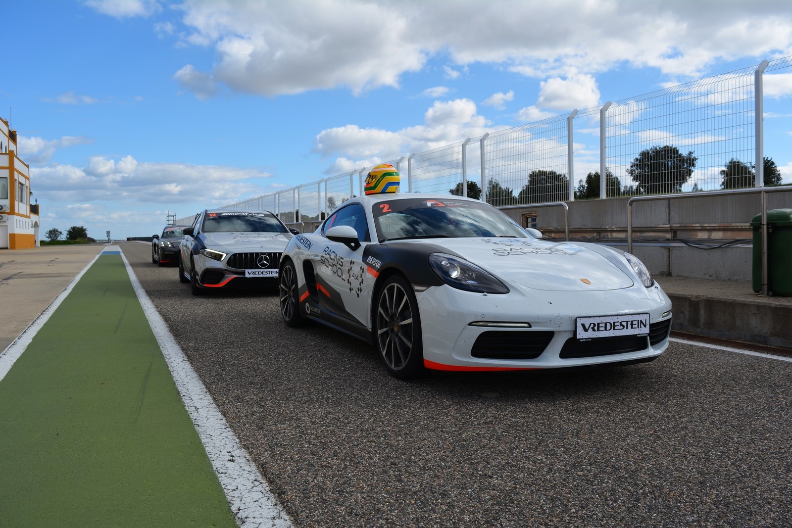 La seconda attività era la pista vera e propria, lunga circa 2,5 km. Le auto disponibili erano la Porsche Cayman 718 S gommata con il Vredestein Ultrac Pro in dimensione anteriore 235 35 R20 e posteriore 265 35 R20 e la AMG GTC gommata 265 35 R19 e 305 30 R20. Era disponibile anche la AMG A45S, ma non l’ho provata.